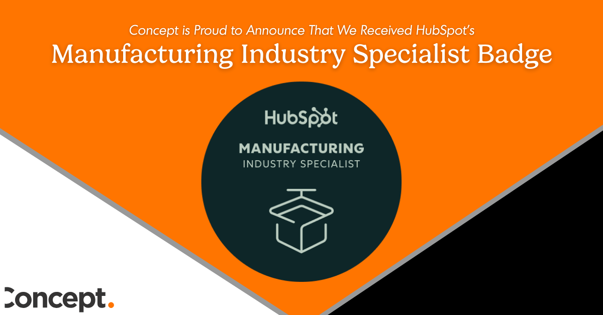 Concept is proud to announce we have received our first Industry Specialist Badge from HubSpot, the Manufacturing Industry Specialist Badge. These badges, made available for specific industries and supporting partners at the beginning of 2026, demonstrate an ability to deliver industry-specific solutions, integrations, and use cases.